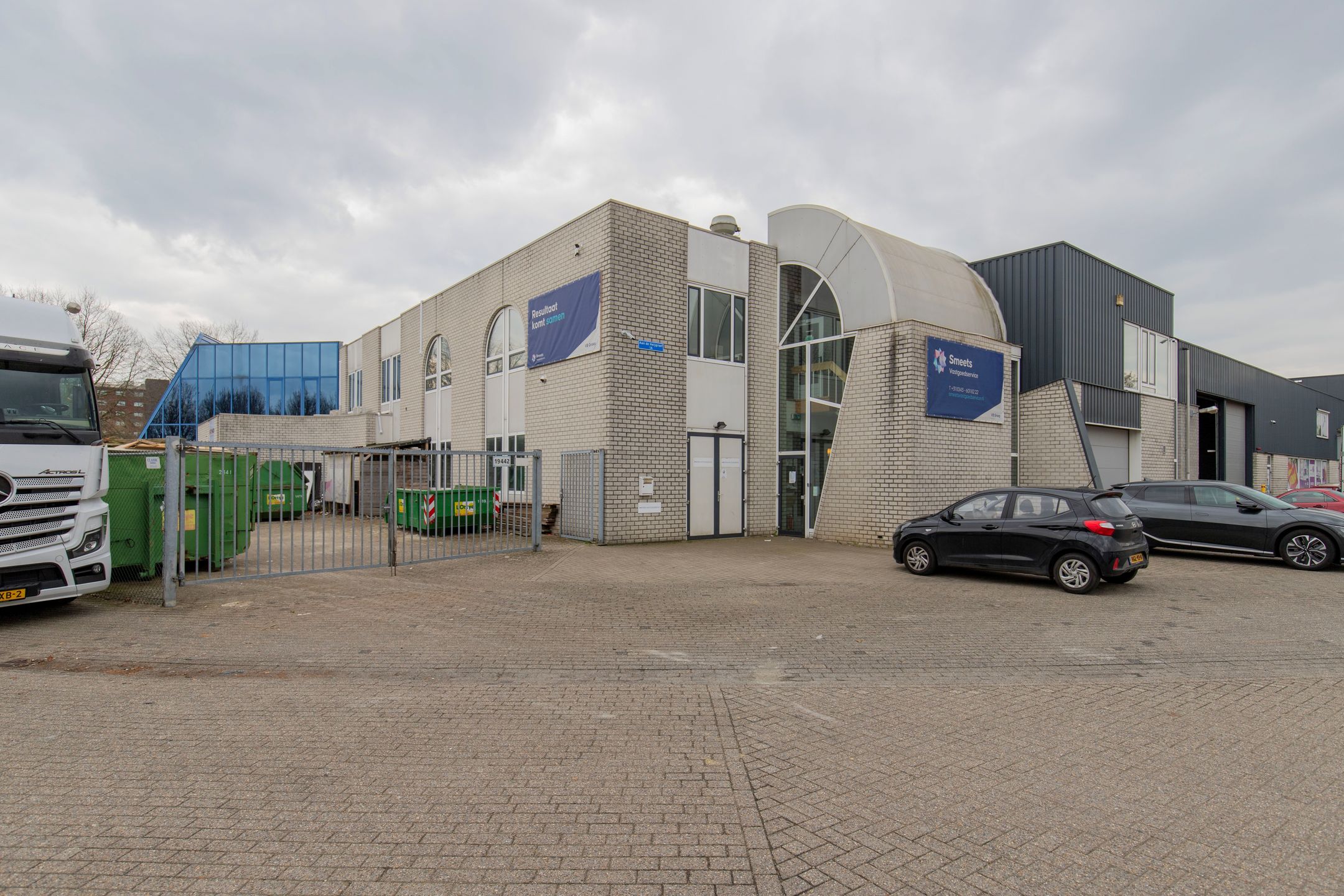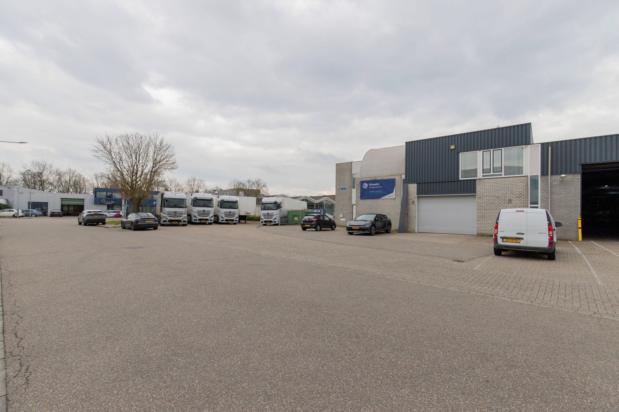 Parkeren is mogelijk direct voor de deur, met uitzondering van het gedeelte waar JR Transport gevestigd is.
